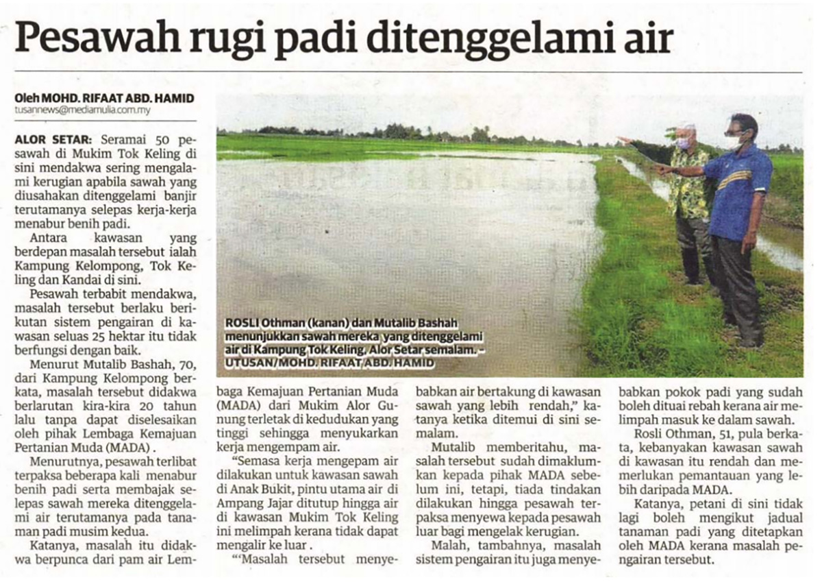 Seramai 50 pesawah di Mukim Tok Keling di sini mendakwa sering mengalami kerugian apabila sawah yang diusahakan ditenggelami banjir terutamanya selepas kerja-kerja menabur benih padi.