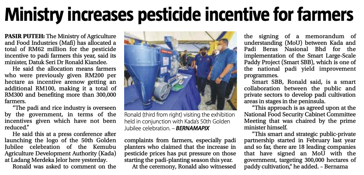 - Bernama: Additional RM62 mln pesticide incentive for farmers